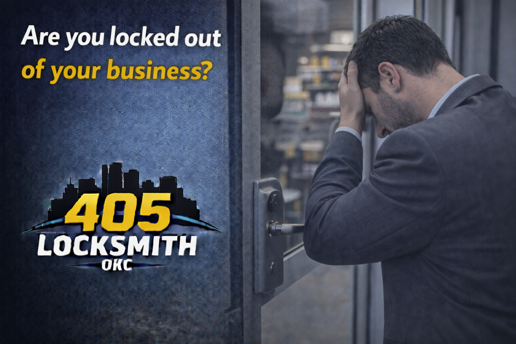 Are you locked out of your business. 405 Locksmith OKC provides fast commercial lockout service across Oklahoma City. A mobile technician arrives quickly and opens doors without damage. Service covers storefronts, offices, and warehouses. You avoid downtime and forced entry. Help runs day and night with professional tools, clear pricing, and rapid on site completion to keep your operations moving.